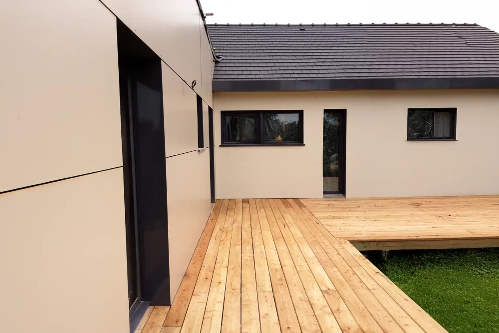 Nous intégrons naturellement une dimension écologique à chacune de vos réalisations. Cette vision se traduit par l'orientation optimale de votre logement, le choix de matériaux écologiques, des solutions d'isolation performantes et des systèmes énergétiques efficaces. Pour les extensions et surélévations, nous privilégions souvent l'ossature bois pour ses qualités environnementales. Votre demeure est pensée pour réduire son empreinte écologique tout en vous assurant un confort optimal au quotidien.