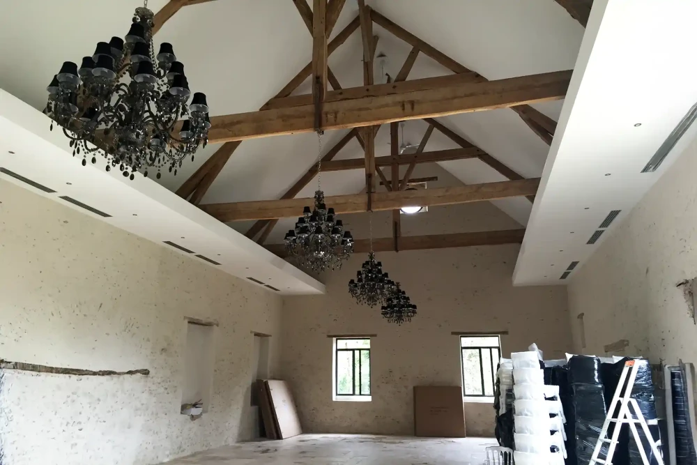 Nous débutons en identifiant avec vous les éléments patrimoniaux qui vous tiennent à cœur (charpentes, façades, éléments décoratifs). Notre maîtrise des procédés et matériaux traditionnels nous permet alors d'intégrer discrètement les améliorations modernes dont vous avez besoin. L'isolation, les réseaux et les équipements trouvent leur place en respectant le caractère de votre construction.